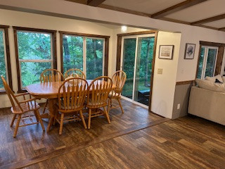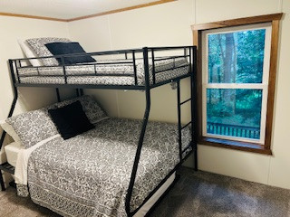 Fully remodeled 3-bedroom cabin at Pine Point Lodge. The bedrooms are as followed: 1 room with a King, 1 room with a queen, one with bunks and there is a sunroom with a twin daybed. Large, open-concept living room and outdoor space with firepit, grill and backyard.